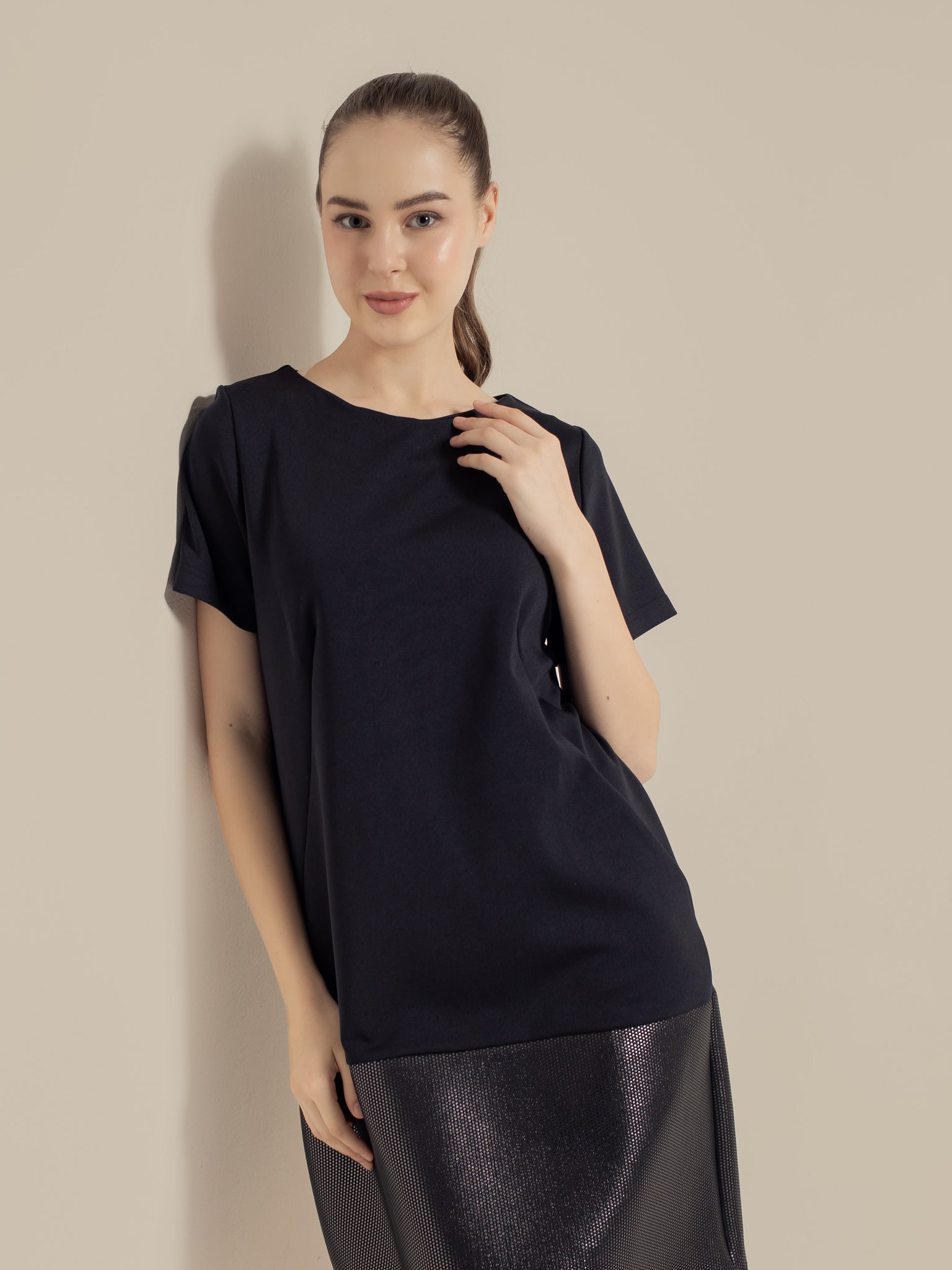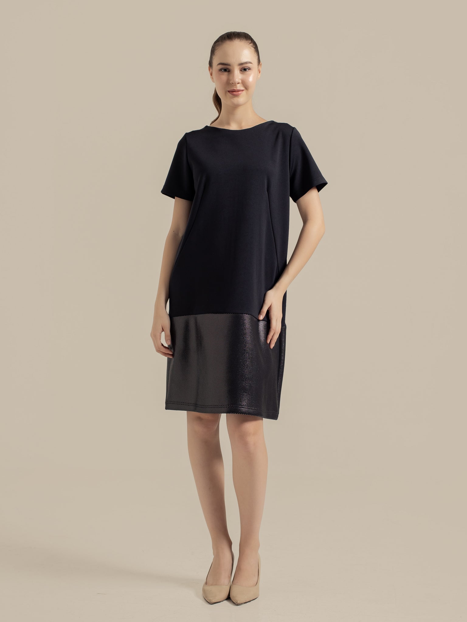 Black Scuba combination DressShort Sleeve
